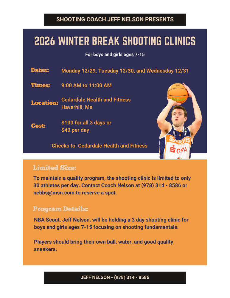 TYB Families - I wanted to share an upcoming opportunity for December vacation. Coach Jeff Nelson will be hosting three days of clinics for boys and girls ages 7-15. Several TYB coaches and teams have worked with Coach Nelson and the experience has been very positive. Please see the details and costs in the below flyer.